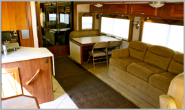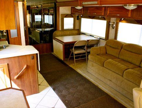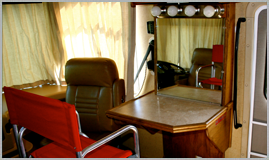 These motorhomes feature a large make-up station with lighting and multiple plugs, large wardrobe rooms with plenty of storage, clothes racks, and large mirrors. We provide a steamer, iron, ironing board, and top-notch service at NO EXTRA CHARGE. We have worked with some of the largest companies in Houston and some of the most famous names in television, film, and many other industries!